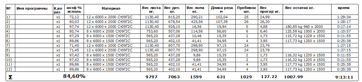 Можно как то сделать отчет, чтобы выдавал общую массу листа, деловой остаток (если есть), лом и потери (то, что сгорело)?