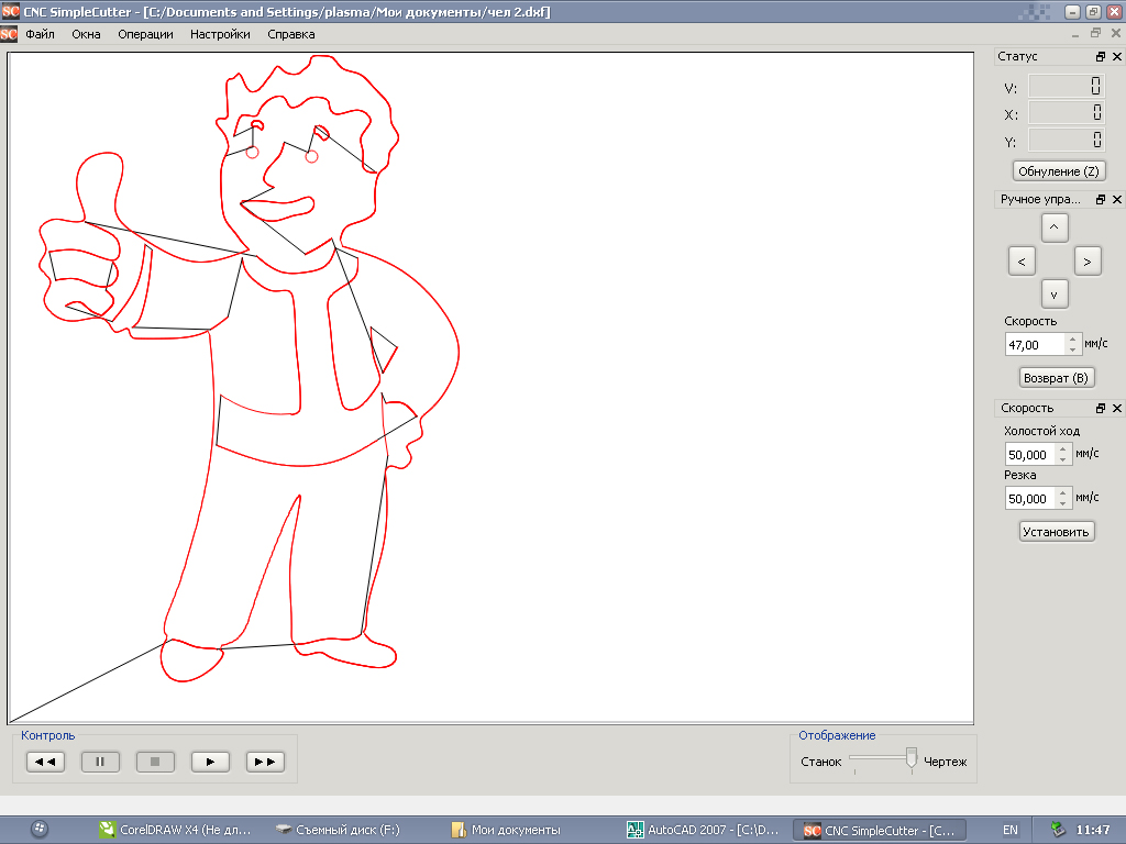" Если файл (уверенность пользователя) правильный. То, втыкаем флешку, на маленьком дисплее выбираем опции (толщина материала, безопасный подход, обороты, инструмент) и так далее... и просто жмем "В РАБОТУ"" - вы считаете это достижением? Я не очень. Мне это удобнее делать сидя в офисе с чашечкой кофе, а не стоя перед станком в цеху. Отдать это оператору? Хорошо, допустим. Сразу возникает вопрос: пока станок режет один файл ваше система позволяет готовить в работу другой? Далее, как я выше интересовался, функционал. Различные стратегии обработки, подводы-отводы, припуски, слои, и т.п. - как с этим?