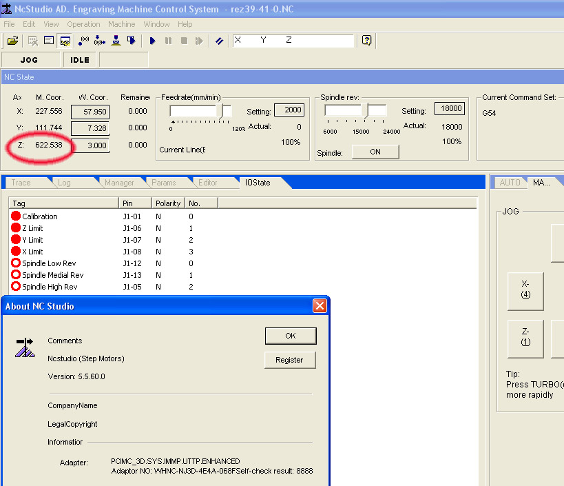 Присмотрелся к NcStudio, левая цифра положения по Z насторожила,-