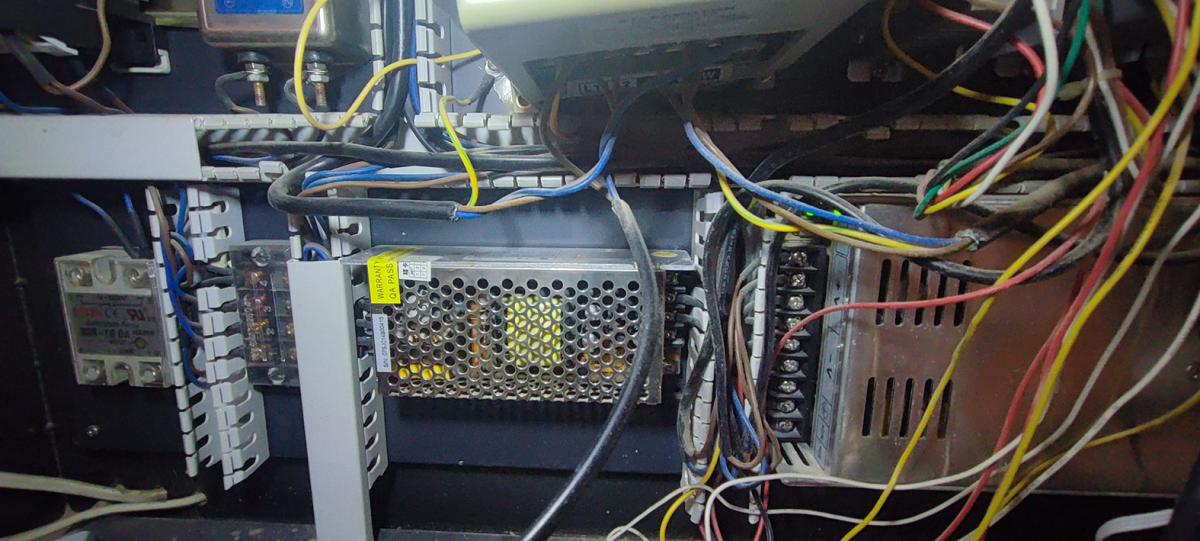 Зажужжал кормилец! Причиной было то. что в маленьком блоке питания отгорело все. что могло. (Хутор... Напряжение не то, что скачет, просто вырубается сопровождая хорошим скачком.. На каждую фазу из трех стоит по 10КВт стабилизатору, но...)